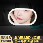 车载遮阳板带LED灯化妆镜 马卡龙色高清镜面车内补妆无痕粘贴梳妆